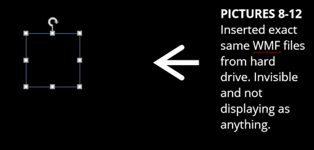 However, if I try to import new WMF files into my document (basically inserting the same WMF files as above) nothing appears on screen (see empty boundary box below) and the timeline shows a generic picture import - the file names do not import/insert.