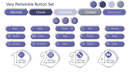 Here's a playful button set I created for Challenge #360. I used Pantone Color of the Year 2022, Very Peri and some of its shades. You can customize the colors and icons--just download my art file...