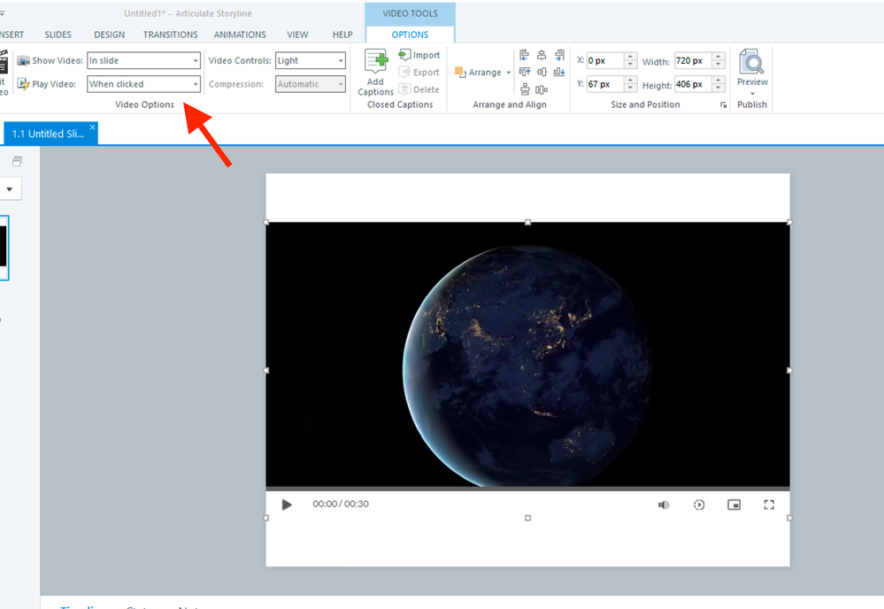 Using the 'automatically' option will prevent learners from playing or stopping the video on the slide, which only the video controls and the player will be able to do.