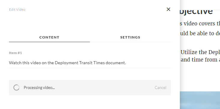 I have a MP4 video I'm trying to load to Rise and it just says "processing", but nothing happens. The video size is 219,361KB. Any suggestions? Thanks!