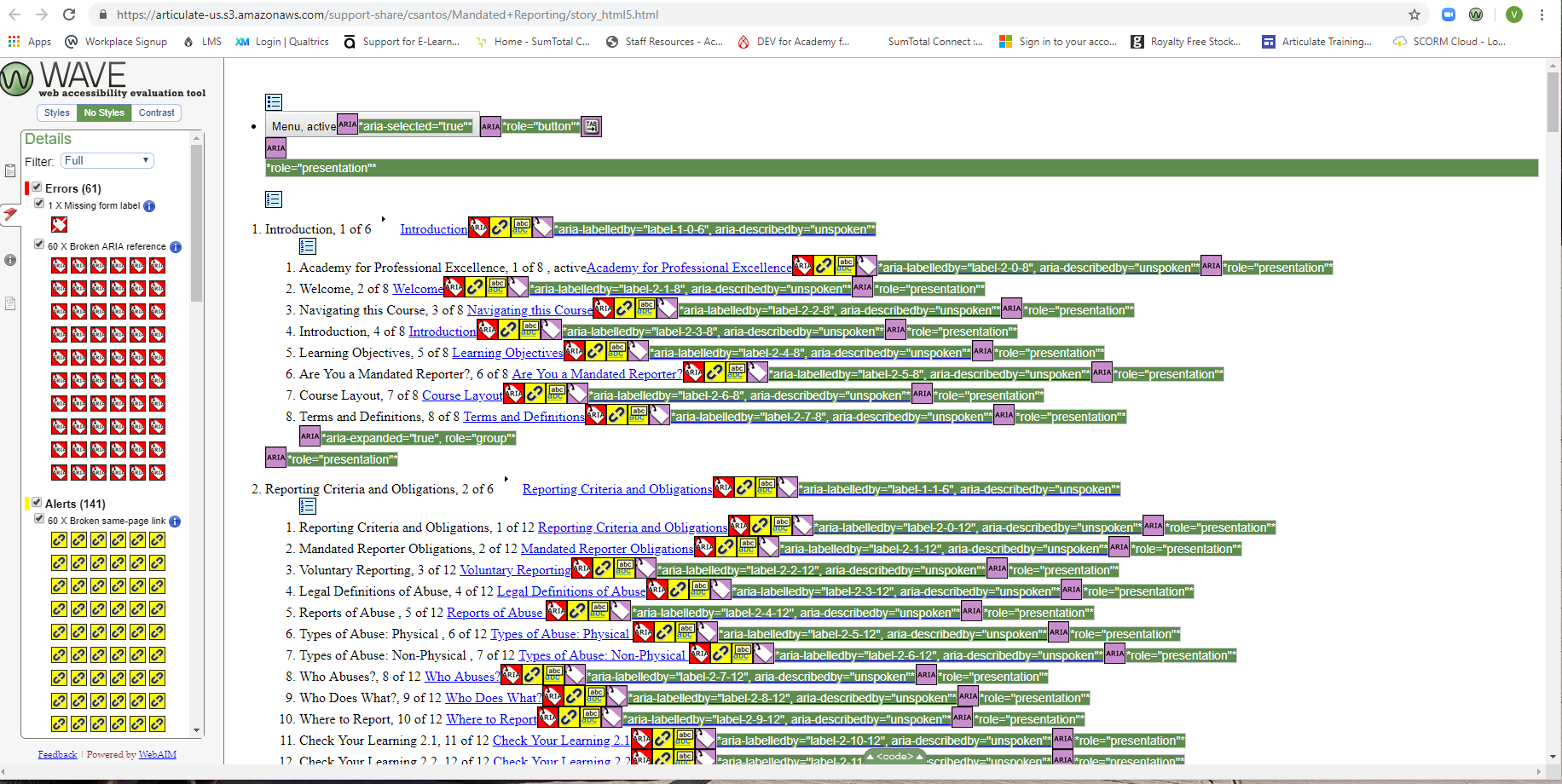 Hello, we are running into issues with stoyline 360 course that is resulting in Broken Aria references. We worked with an Articulate engineer to try and solve this issue and changed to the modern player. Unfortunately, our customer's testing is still coming up with the same issues. Can you assist in a solution for this? It appears that this issue is not something that is author controlled. Also wondering if this is an iFrame issue. Can you assist?