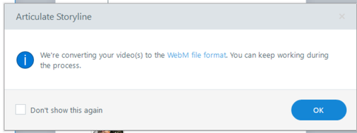 Hello! I updated Storyline this morning. Now, when I open a course, it automatically converts my MP4 files to WebM. Why is it converting the video files?