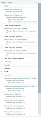 Anyway. I duplicated my page, made hover and selected states for each box by duplicating mine and deleted all my custom triggers and my problem is the hover state overrides the selected state which is why I started going through this whole thing with my custom over/on states so I can tell it to go to over unless it is on. Which works most of the time except when it doesn't. It didn't used to let me set the override for hover when I first started doing this but now it does apparently but as far as I could tell that was still demonstrating the same issue.