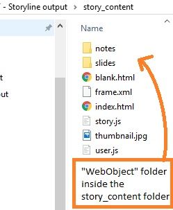 Tested: This will create a WebOjects folder (with needed assets for self contained output) under the story_content folder... "You need to create separate folders for source files first"