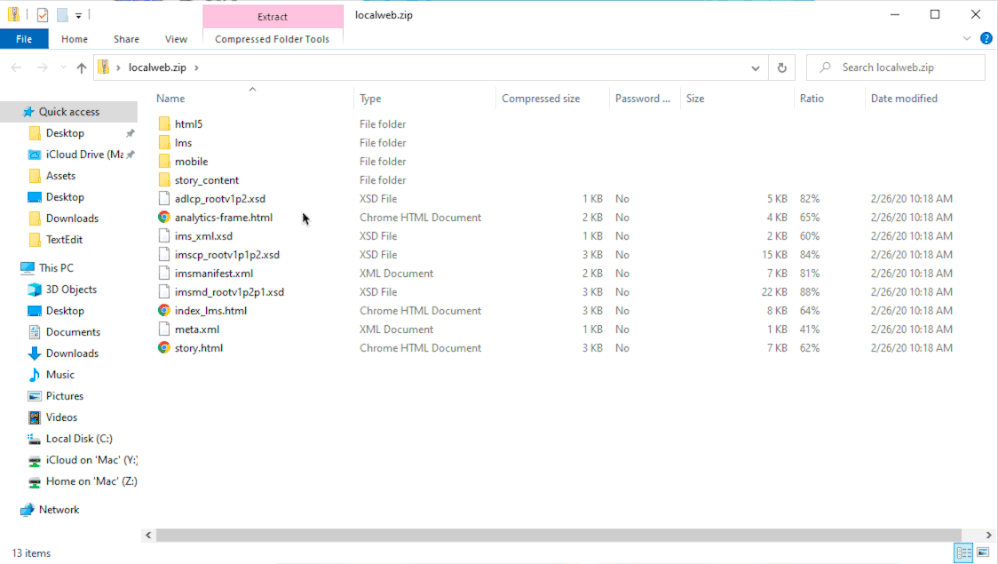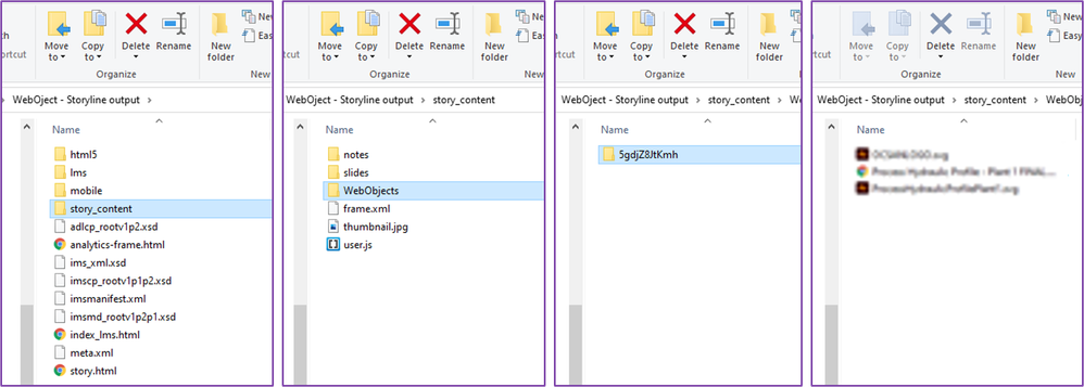 From there, I unzipped the LMS package and clicked on story_content to access the WebObjects folder.