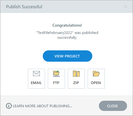 After publishing you should see the dialogue box below.