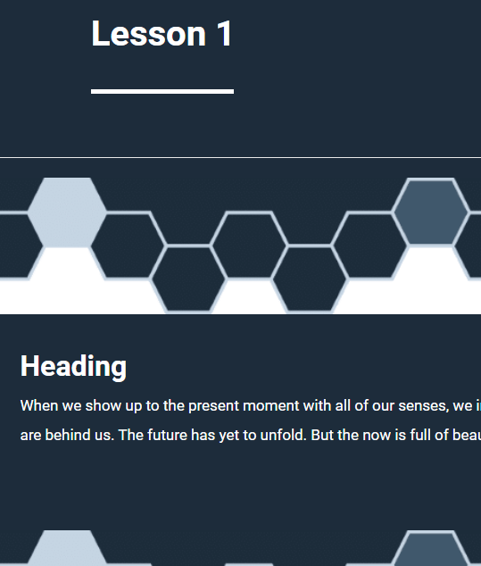 - A thin white line appears between a Lesson Header and the first Block that follows, when using the "Rise" course Theme, and dark colored Header/Block backgrounds.