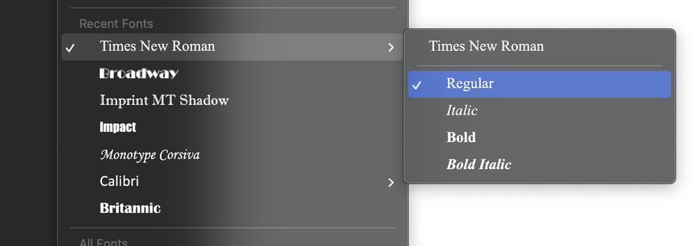 Would you mind opening Microsoft Word for me and checking to see if you have both Times New Roman and Times New Roman Regular listed in the available fonts? In my Microsoft Word Windows version, I could only see Times New Roman, so I'd like to see if the same is true for you.