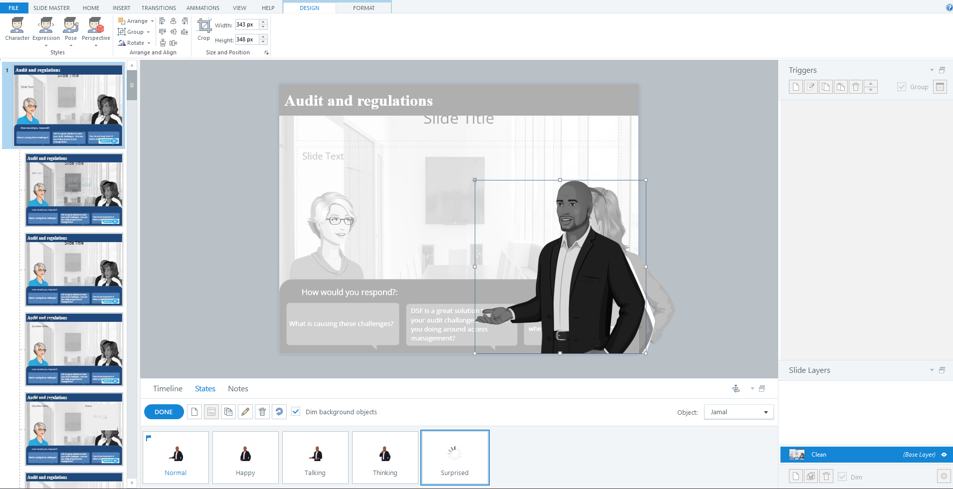 It seems like Storyline was working great for awhile. I am doing some branching scenarios and have a pick your avatar slide and then populates the rest. Since I was having issues, I thought I would try to create a master slide to minimize accidental mistakes. I am having the same issue as I was before. I may be crazy, but it seems all of my issues seem to come up whenever I am changing or adding states to Sylvie character. When I did it the regular way Sylvie had some issue (not showing up sometimes, some freezing and other odd behavior) and now with master slides, it seems to get stuck and freeze when messing with her.