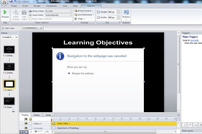 Normally I've been able to embed Wistia-hosted videos into Storyline using iframe embed code such as that shown below. However now it's not displaying in the Articulate slide. Instead, after inserting the embed code I'm getting a web-page error that reads "Navigation to the web page was cancelled." And when I publish the html output shows a blank page.