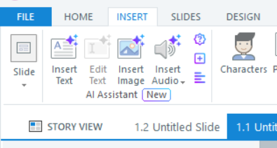 You can click the group-name button to access the buttons it contains. Or widen the Storyline window until the buttons appear directly in the ribbon.