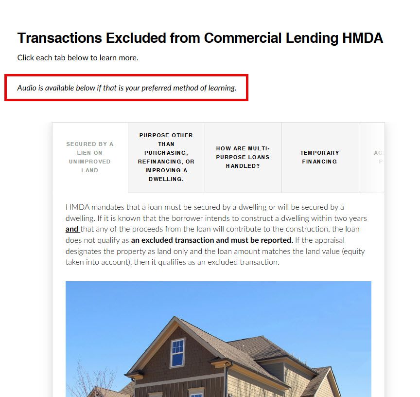 - Be sure to provide a text transcript for learners who cannot listen to the audio.