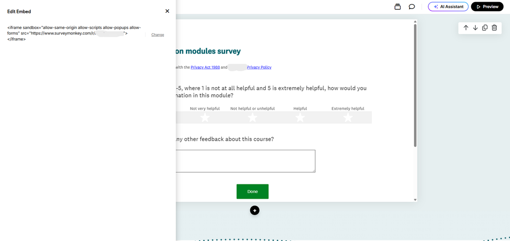 i want to integrate some feedback questions at the end of a rise course.