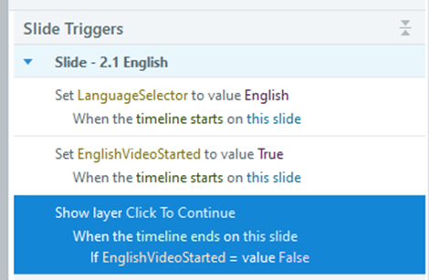 An issue with extending the timeline on the layer is that now is when the learner scrolls back through the video, the instructions layer stays until the 5 seconds is up, covering the video layer. Do you have any suggestions for that? I was hoping there was a logic setup that I could do that triggered something like, if the timeline is not at the end then hide layer. I tried reusing the trigger you highlighted and using it a bit differently but no luck.