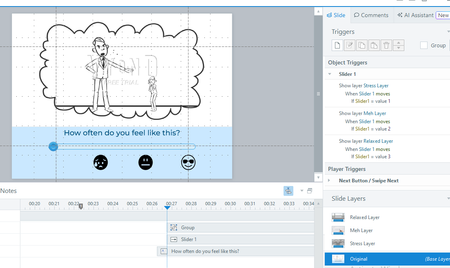 I tested this interaction using the attached Storyline project, and I was able to display the sublayers when the slider moved to the designated spot. Based on your screenshot, your triggers appear to be set up correctly as well. However, I did notice a difference in the wording of the "If" clause between our triggers.