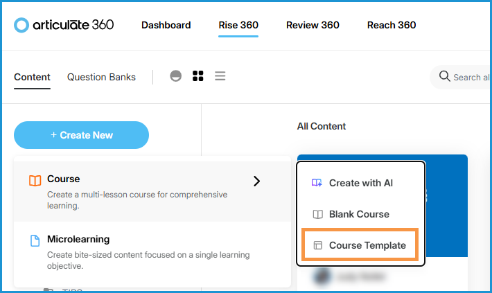 Access them by clicking +Create New > Course > Course Template.
