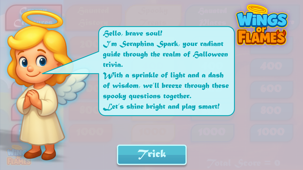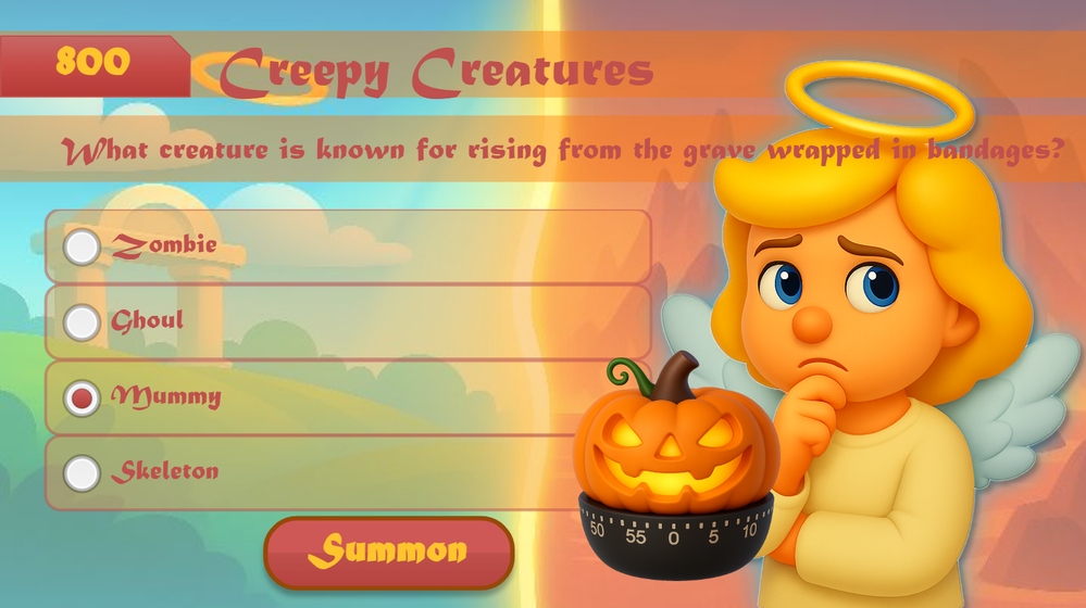 My original plan was to create a full Halloween Edition of my Jeopardy-style game: new graphics, UI, questions, and sound effects (based on the same build I used for my cooking-themed game). But since the deadline arrived and my idea turned out to be a bit ambitious, I’ve only managed to complete the first category: Creepy Creatures (and it still needs some testing too).