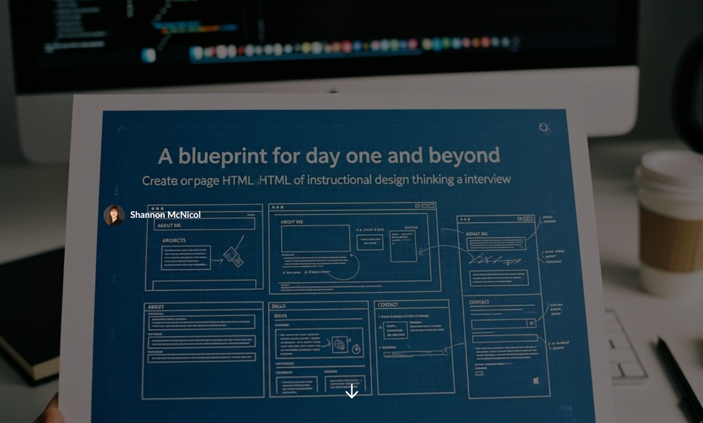 I partnered with Claude AI to build an interactive first 90 days Blueprint — a fully paginated HTML experience designed to drop straight into a Rise 360 Code block. I described the role (a Learning Experience Designer in healthcare), shared what comes up in interviews, and we built the whole thing together in one conversation. Concept, content, structure, design, accessibility tweaks — all of it.