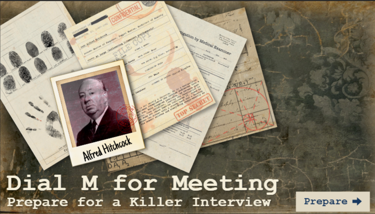 With a twist, I offer a "pre-leave-behind" for a fictitious interview with the Master of Suspense. Sadly, those who neglect the stated assignment objectives, like me, may find the outcome...unfavorable.