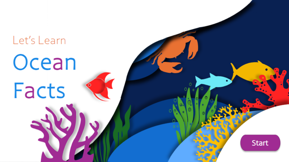For this activity, I used an animated video background as a base layer and added numbered hover icons to allow users to scroll over each sea creature to learn a few simple facts about each. Upon hover, a small circular video of the real creature appears along with some text about the creature and a learn more link to inspire more in-depth learning about each. Hope you like it!