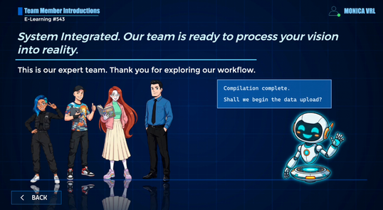In this interaction, users are guided by "A.I.L.A." (our AI host), who helps them explore the profiles and stats of our core team: Emperatriz, Fernando, Christian, and myself.