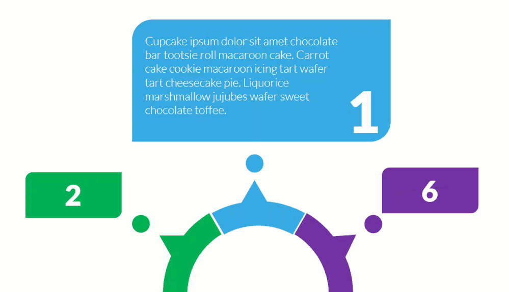 So, I decided to rebuild the 6-step process in this demo. I created the first slide, duplicated it, and grouped all the shapes and textboxes in the process circle (excluding the large one) to rotate them for each process step. The Arrange > Make the Same Size feature was quite helpful, and I think the result turned out well!