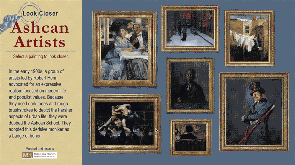 E-Learning Heroes has long guided my work creating art-based learning modules that build visual literacy skills and weave the arts across the curriculum. These modules encourage students to look closer and think deeper about works of art. When I first saw morphing in action, I thought it was engaging—but wondered whether it could truly serve instructional value. This magnifying movement may be more metaphor than method, but it’s a start.