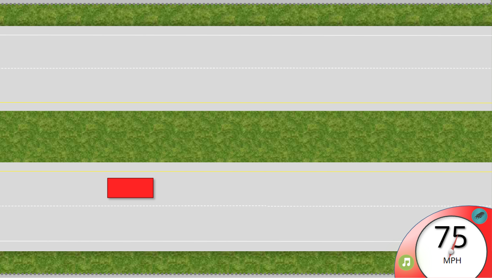 In this particular design, I wanted to explore how sliding textured images horizontally from one side of the screen to the other could simulate motion, especially with a simple, red rectangle standing in as a car controlled by you.