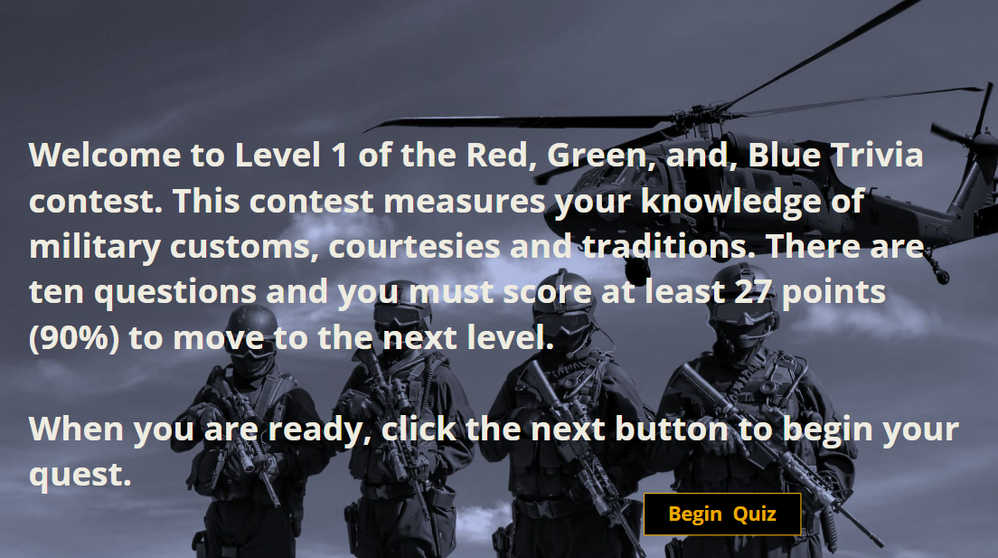The content in this example is not relevant With my military career as a backdrop I was having a little fun.