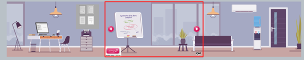 The images of the rooms that are off to the sides of the stage become visible when you click one of the arrows. That triggers a motion path to create the animation.