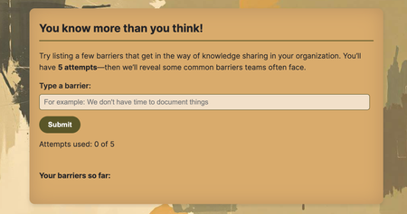 I've been experimenting with the code blocks lately. I vibe coded a block for a Knowledge Management course I've been working on to do a pre-knowledge check with ChatGPT. I really wanted the use...