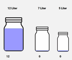 If you pour c1 into c2, only 7 liters will enter c2. 5 liters will remain in C1. Easy step one.