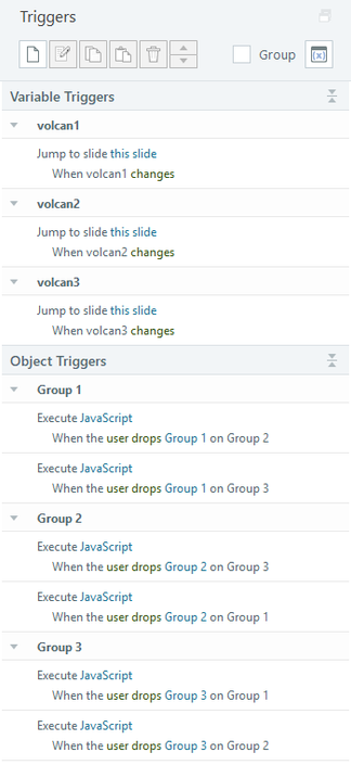 So after each drop, 2 of the variables will have changed. We trigger to 'jump this slide' when this happens.