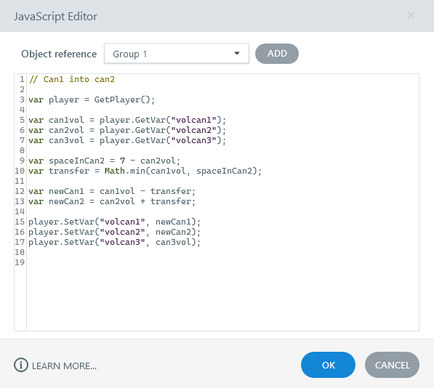 You can clearly see the logic, we needed 6 possible actions. we have 6 scripts which calculate how much water is in the cans you use.