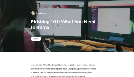 Here's a short information security-themed course on phishing that I created with a little help from a Rise 360 template. I just replaced the placeholder content and added a few of my own images to ...