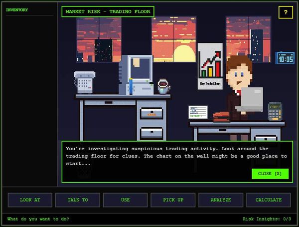 Inspired by the old point-and-click adventure games, I wanted to build a simulation-style experience that lets learners have fun while actually practicing investigation skills. In this scenario, you step into the role of a newly assigned Risk Investigator trying to figure out why financial projections don’t match real-world returns.