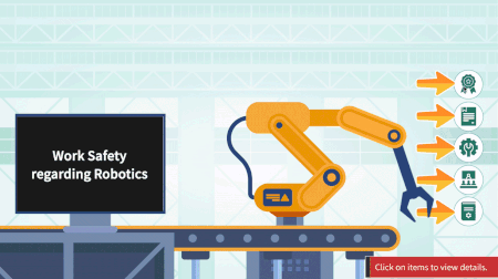 Make graphics come to life like in this interactive robot safety example that moves tips down its own conveyor belt.