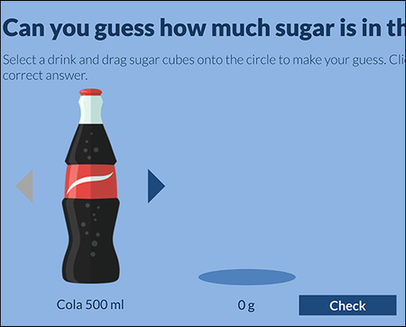Take a guess at how much sugar is in different drinks by dragging and stacking sugar cubes onto the scale. This example lets learners try out new skills.