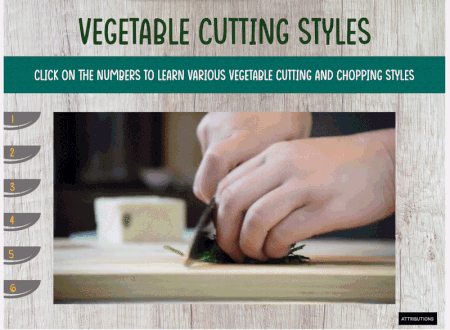 This virtual cooking class uses a series of videos and custom buttons to introduce different cutting and chopping styles. Explore this project