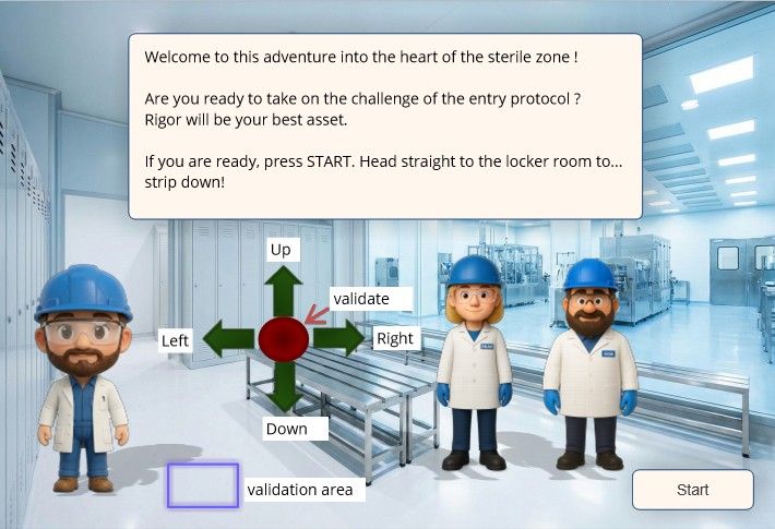 Inspired by AsbjornReinhold's post: Video game seen from above (thank you), I created a serious game designed to make learning sterile laboratory protocols (such as dressing and hand washing) interactive and fun. I need your opinion! I'm looking for ideas to develop new levels. What other safety protocols or scenarios would be interesting to gamify ?