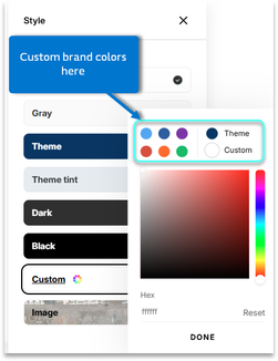 Feature Idea: As an ID for a company with a specific brand package, I would love the opportunity to create a custom theme/brand that includes more than one color to streamline the customization/editing process. Currently, you can only select one hex code as the "theme" color, which appears throughout block customizations.