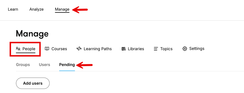 - Navigating to Manage > People > Pending.