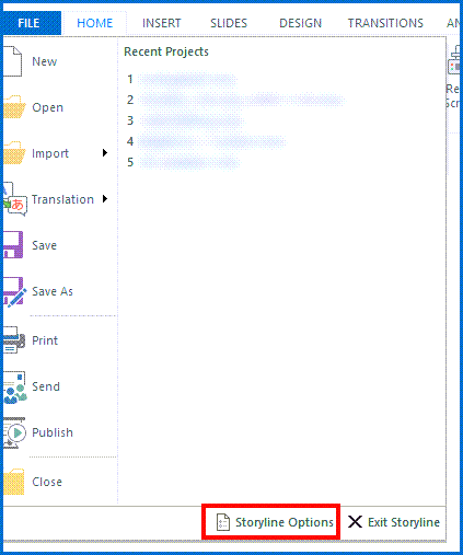 You can access Storyline Options (which include spelling and auto-correct) when you go to the FILE menu.