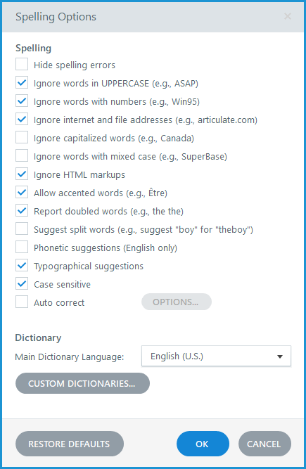 Also, storyline has more options for controlling its spell-check: