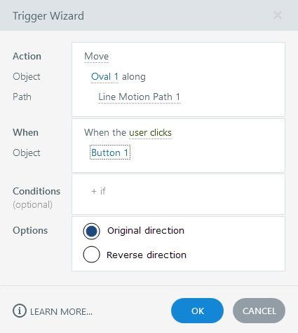 I second that idea. It would also be great if one could add an additional animation like fade in/fade out, or rotate item along the motion path, when setting the "original/reverse path" trigger.