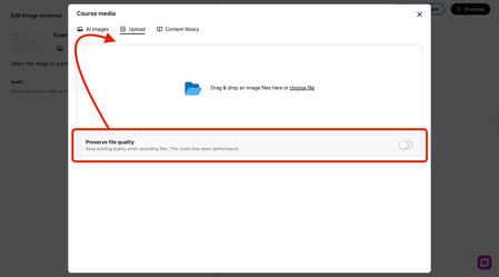 It would be amazing if there were a visual indicator (like a badge or icon) somewhere in the "Edit Image & text" dialogue that allowed designers to know if the image was uploaded with "Preserve File Quality" toggled on.