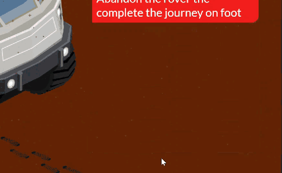 To create the illusion of movement, I used PowerPoint to recolour the wheels on the Mars Rover vehicle, and isolated parts of the tyre track.