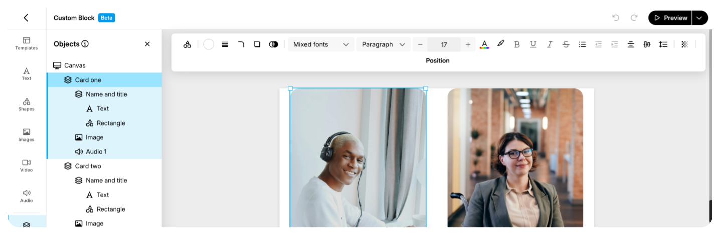 Looking to build a Rise block that fits your exact needs? In this session, you’ll explore how Custom Blocks in Rise 360 let you design with total flexibility—whether you start from a blank canvas or choose from one of our pre-designed templates. Learn how to drag, drop, and arrange text, media, and objects to create visually engaging, learner-focused content from the ground up. Along the way, you’ll get inspired by creative custom blocks shared in the E-Learning Heroes community, and you’ll have hands-on practice deconstructing examples from one of the Rise prebuilt template courses.