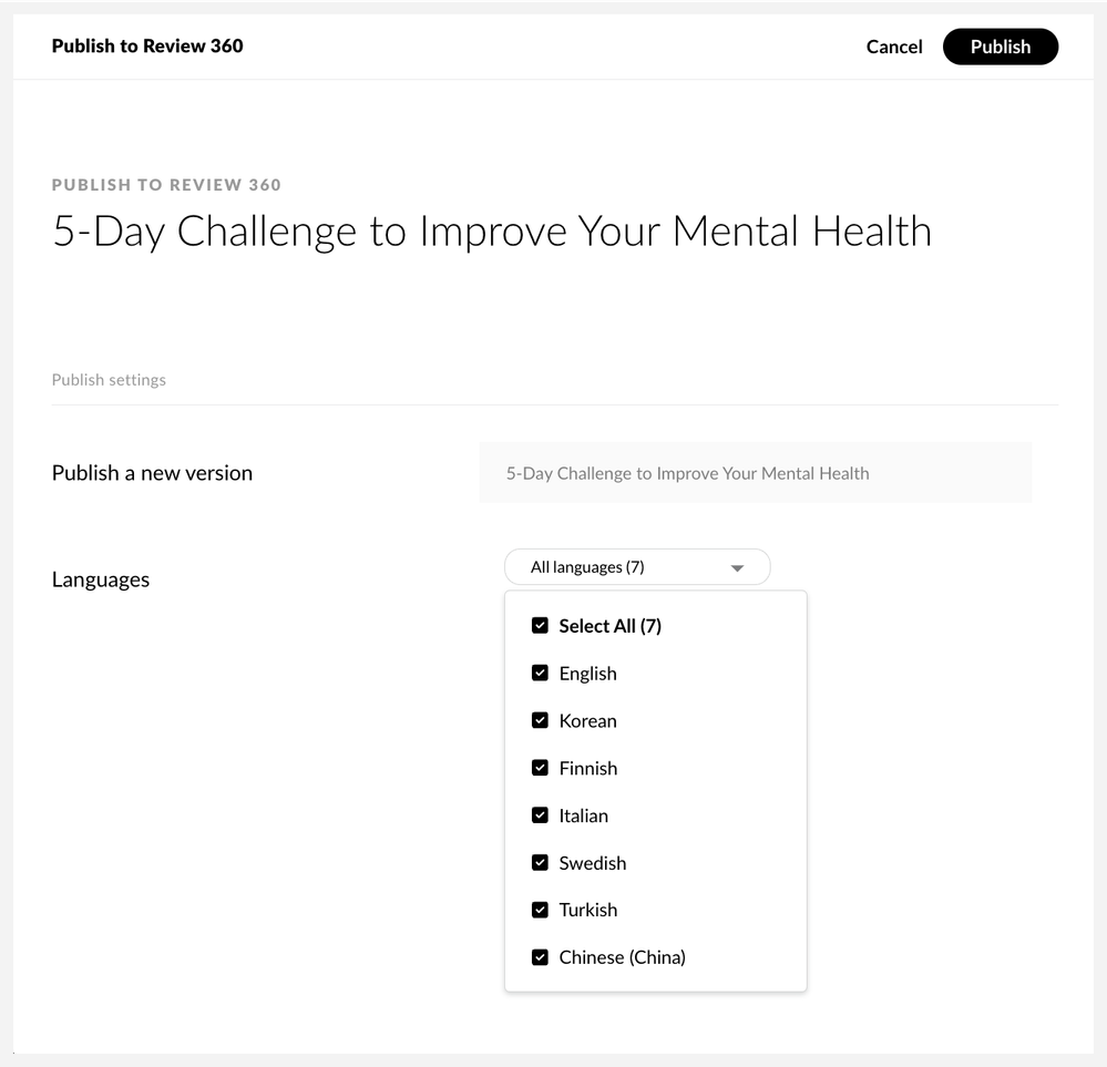 To get started, publish your multi-language project to Review 360. Refer to these user guides for specific details on the publishing process: