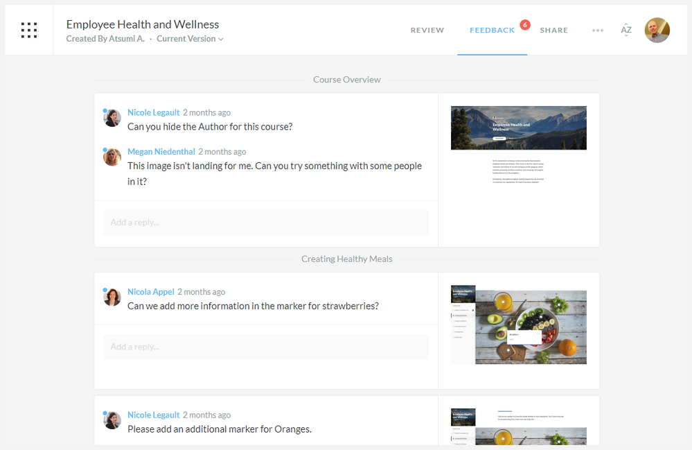 Review 360 lets e-learning developers and stakeholders collaborate on projects and speed up content reviews. Gather feedback, follow threaded discussions, resolve comments, and track version history all in one easy-to-use web app. See below to learn more or download this quick-start guide.